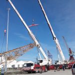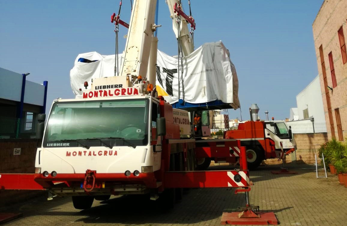 Manobra com 2 gruas Liebherr LTM 1055/1060 c/ acesso estreito ao local, pouco espaço p/ estabilização e movimentações, acessórios adicionais de lingagem, estrados de distribuição de carga (p/ evitar danos no piso), sincronia dos movimentos entre máquinas e, por fim, mais um cliente a perceber pelos valores que nos regemos!